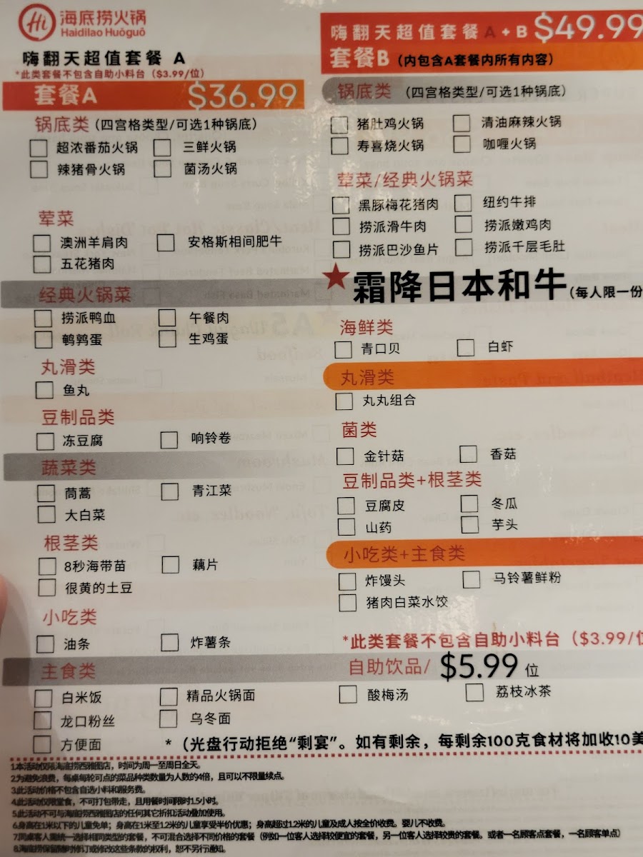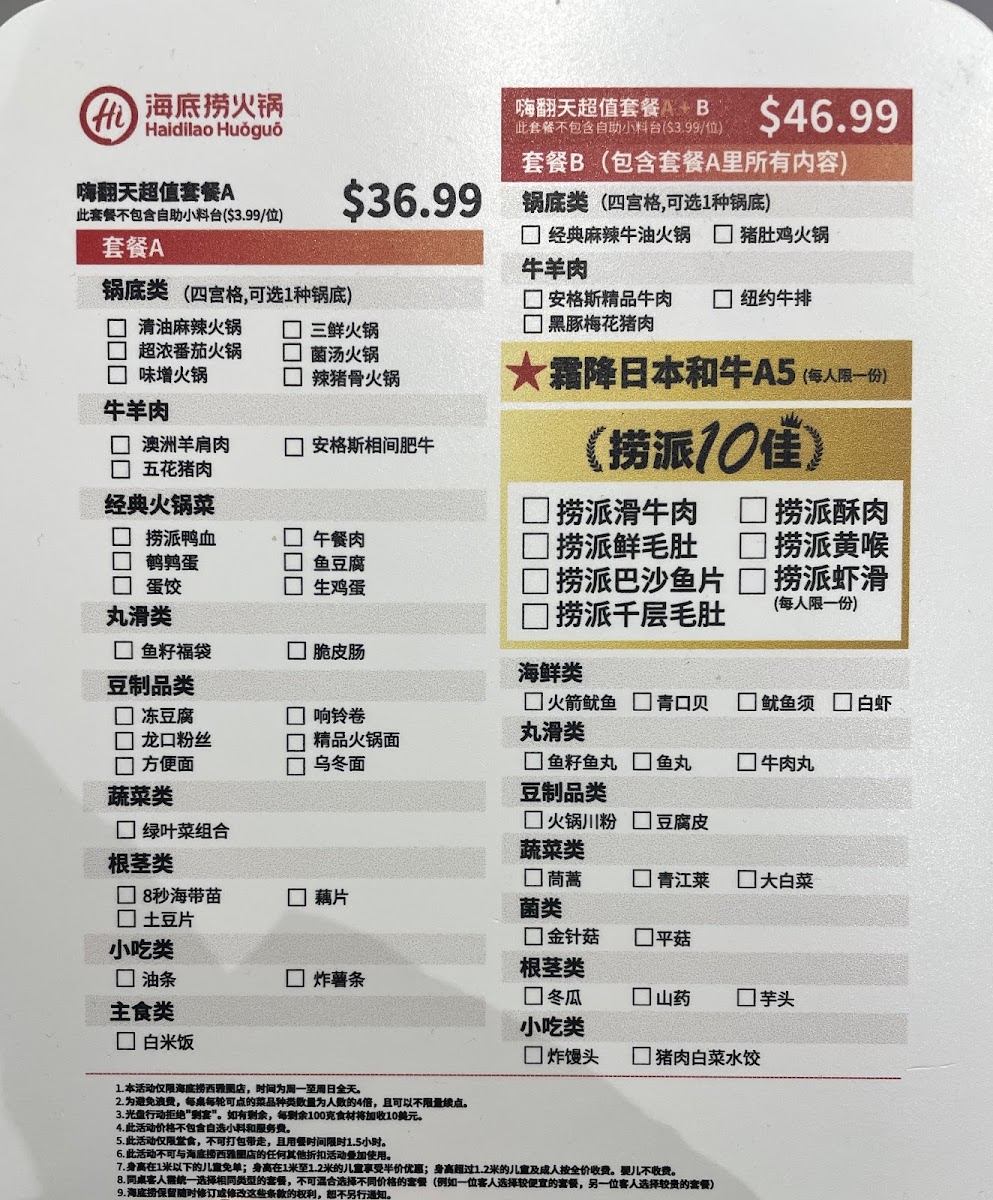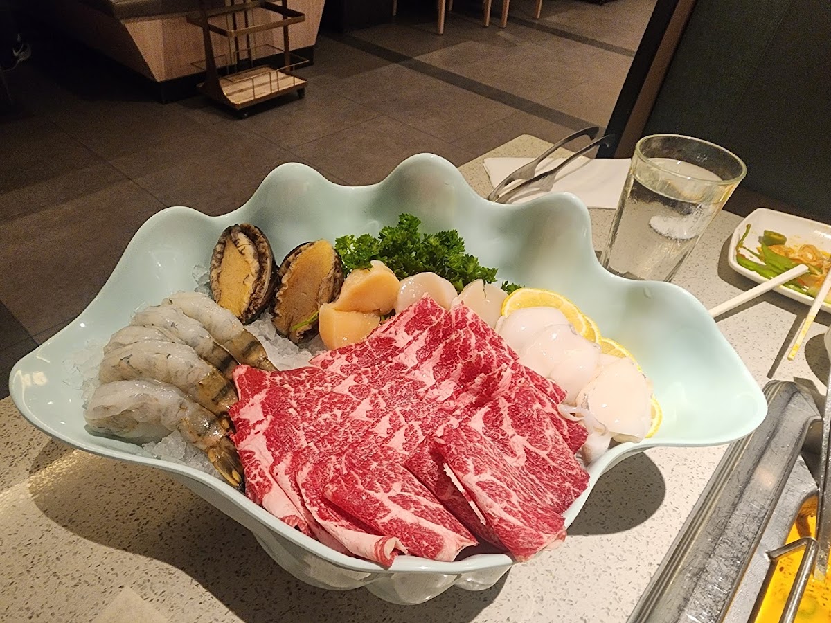 The extensive menu includes an impressive variety of high-quality proteins. Choose from tender cuts like A5 Miyazaki Japanese Wagyu Beef for $69.98, or savor the flavor of Cube Shaped Wagyu for $36.98. If you're in the mood for something different, the Australian Lamb Shoulder and Pork Belly are just $16.98 and $13.98 respectively, both perfect for soaking up the delicious broths. Don't forget to complement your meal with delightful appetizers like the Cold & Spicy Chicken for $9.98 or the refreshing Shrimp Cocktail for $14.98. Each bite is an invitation to linger at the table just a little longer, sipping on savory broth and enjoying the communal vibe of hot pot dining.