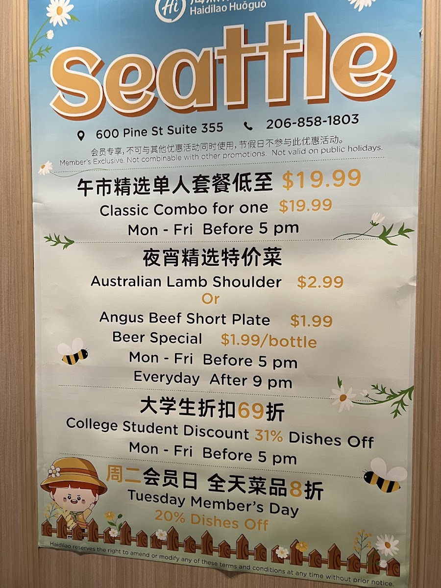 For more information, call +1 206-858-1803 or visit Haidilao Hot Pot's location directly.